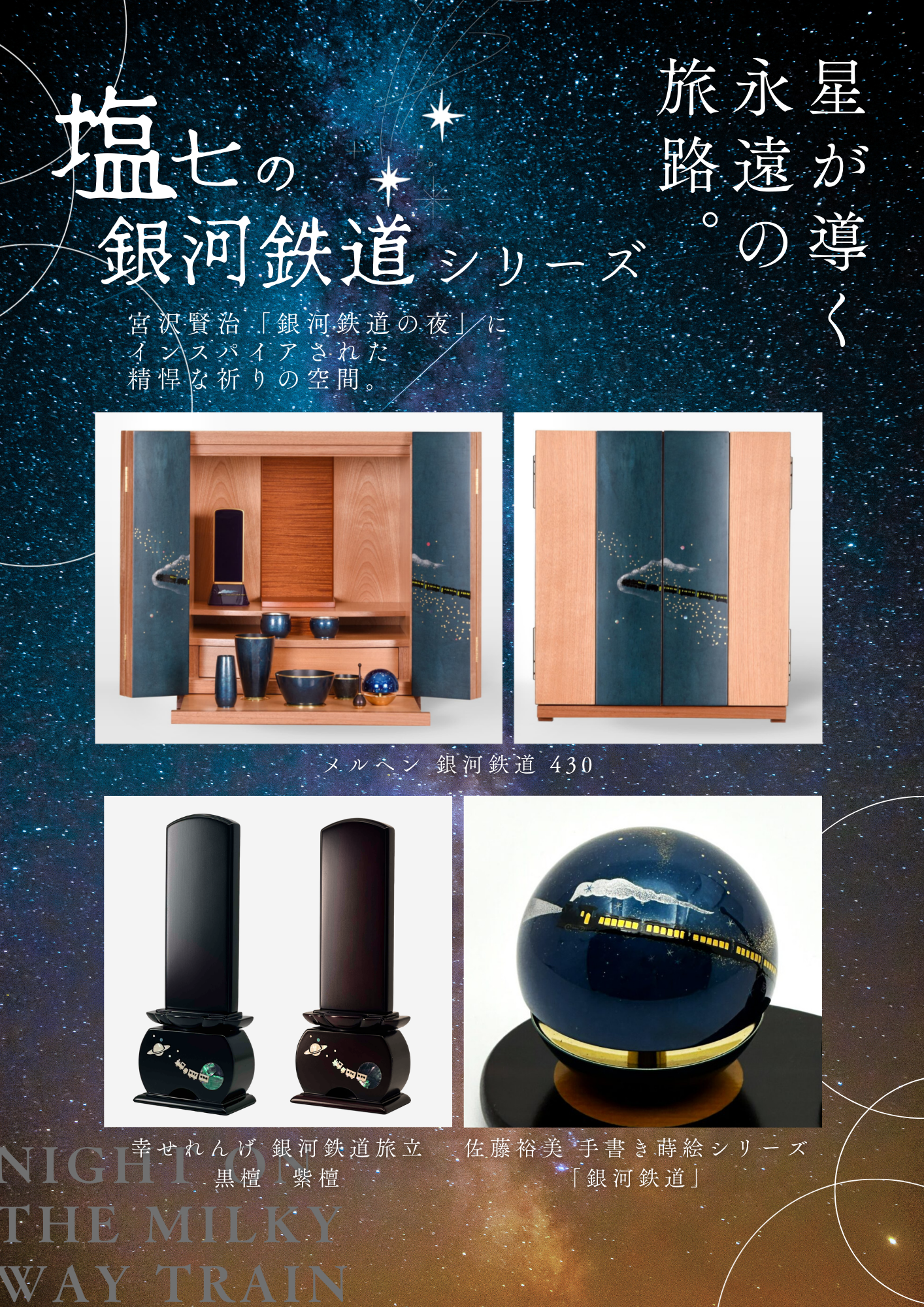 塩七では宇宙を旅する童話、「銀河鉄道」をモチーフにしたデザイン
