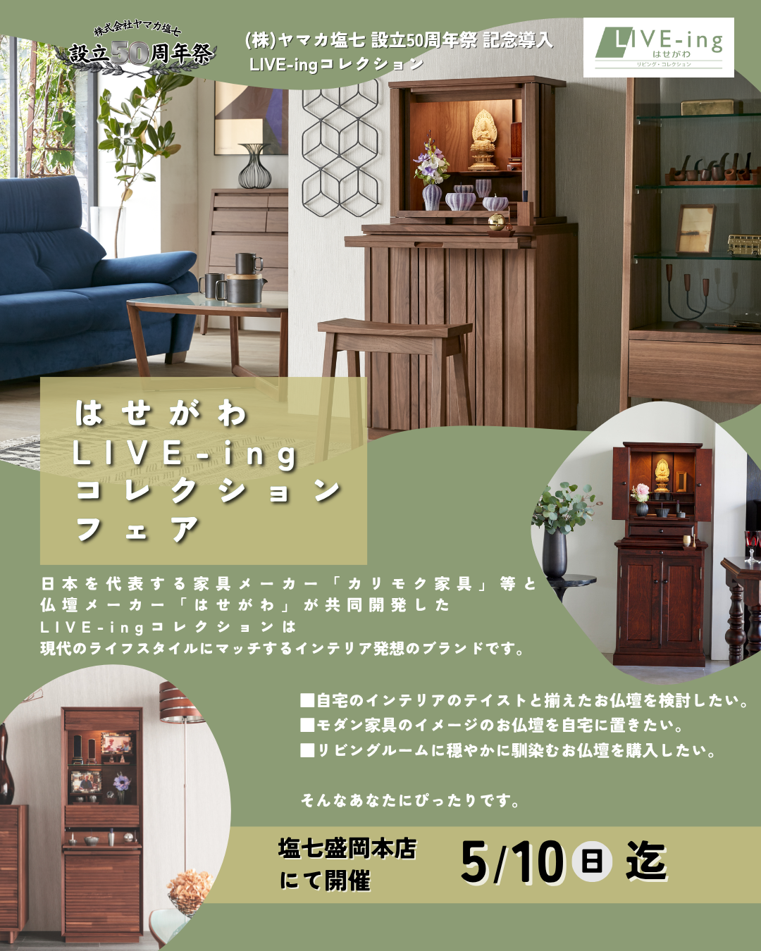 【3/24から開催!】 (株)ヤマカ塩七 設立50周年祭 記念導入 はせがわLIVE-ingコレクションフェア 【盛岡本店限定】